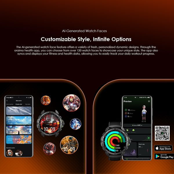 oraimo Watch GT Montre connectée GPS AMOLED 3ATM 1,43" avec deux bracelets interchangeables
